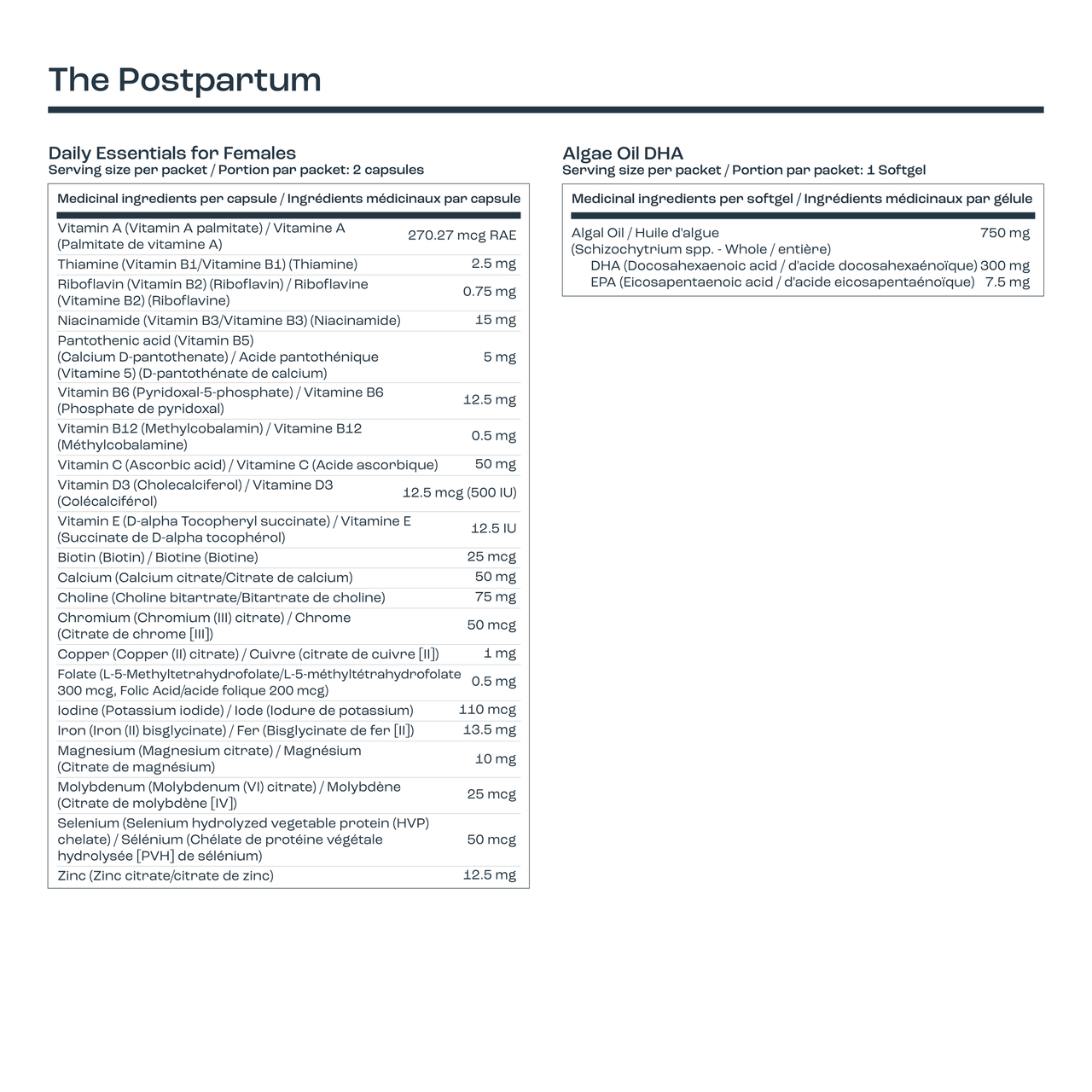 Your new Postpartum Pack contains the clinical-grade nutrients and third-party-tested ingredients that doctors recommend, now in a gentler formula.