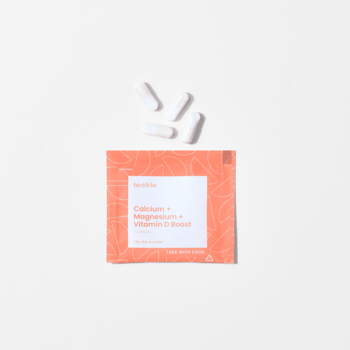 Calcium + Magnesium + Vitamin D Boost Serving size: 4 capsules Servings per box: 30 Amount per serving % daily value Calcium (as Calcium Citrate) 350 mg 27% Magnesium (as magnesium bisglycinate) 200 mg 48% Vitamin D3 (as cholecalciferol) (Vegan) 25 mcg 125%