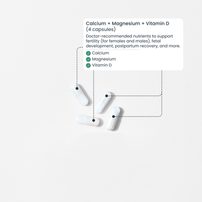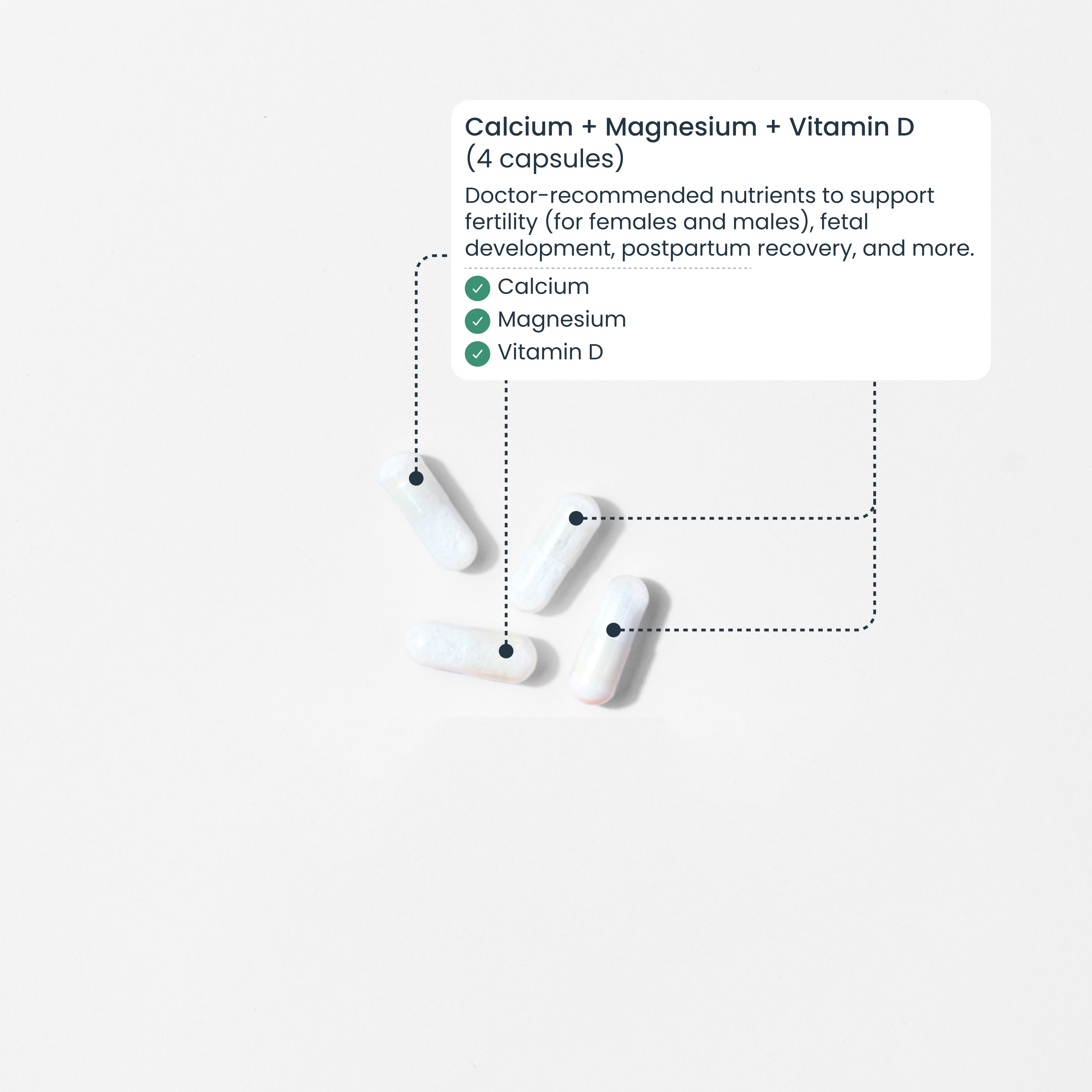 Calcium + Magnesium + Vitamin D Boost Serving size: 4 capsules Servings per box: 30 Amount per serving % daily value Calcium (as Calcium Citrate) 350 mg 27% Magnesium (as magnesium bisglycinate) 200 mg 48% Vitamin D3 (as cholecalciferol) (Vegan) 25 mcg 125%