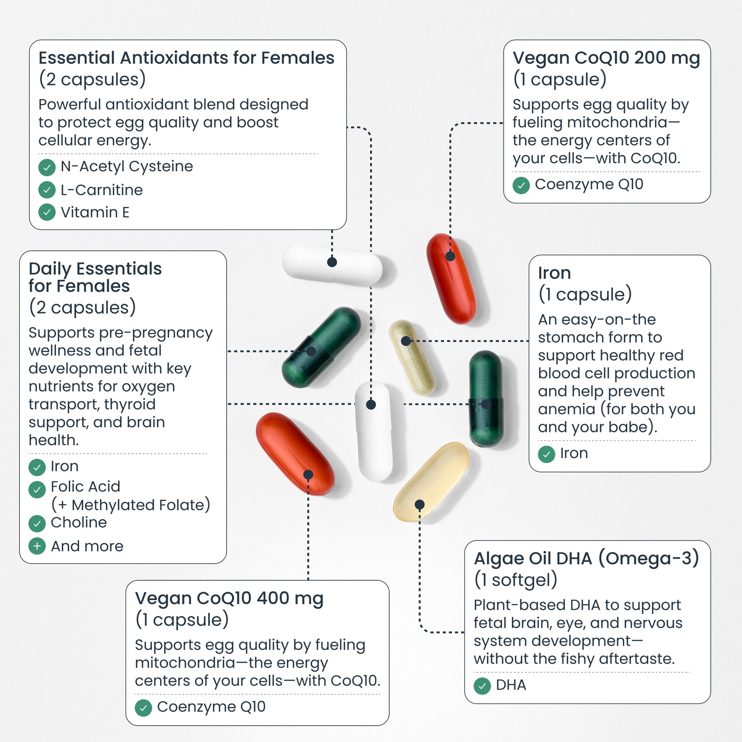 • Supports egg quality with CoQ10, NAC and more powerful antioxidants