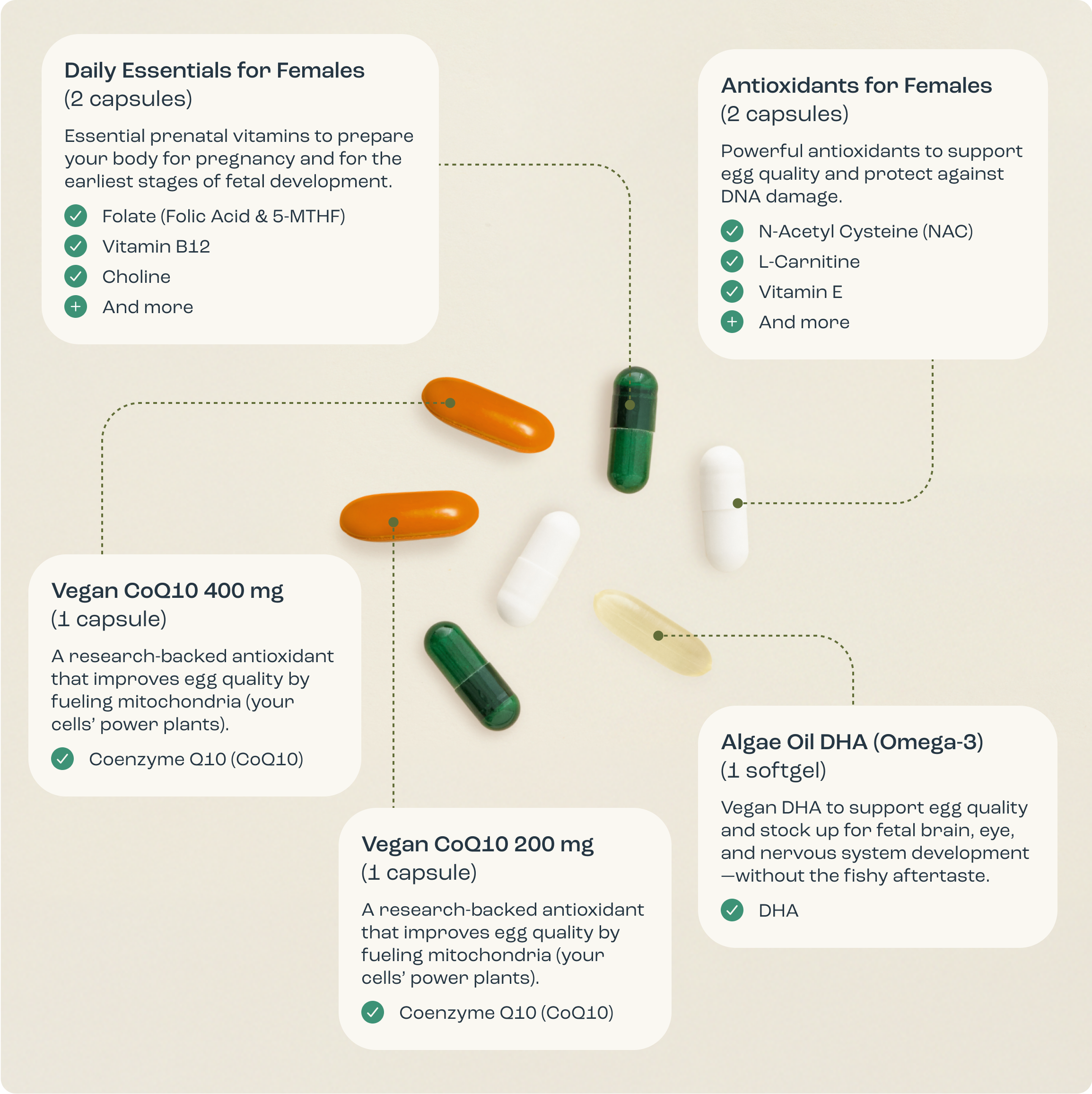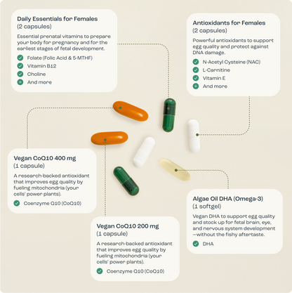 I started the The Power Prenatal for Females + CoQ10 in preparation of my first IVF cycle. I was told I had a 9% chance of conceiving naturally, so I was planning to take these for 3 months before IVF. After a month and a half on this prenatal I became pregnant naturally after trying for 2 years.